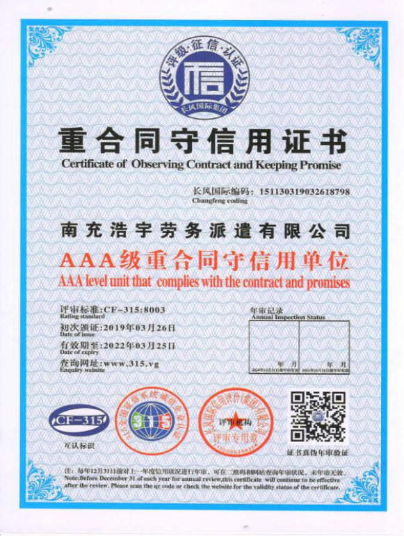 我公司榮獲重合同守信用證書(shū)AAA級(jí)認(rèn)證