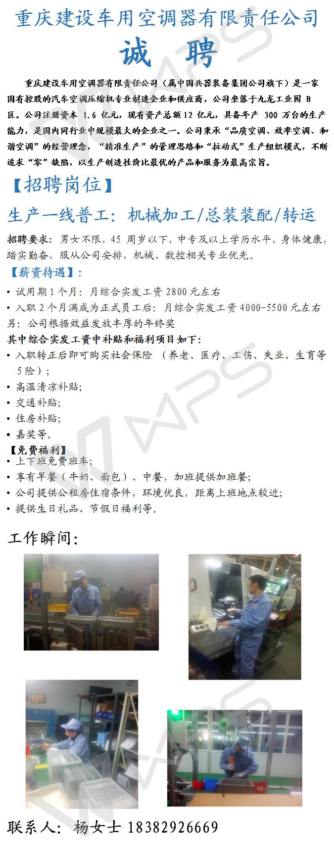 車間普工:機械加工/總裝裝配/轉(zhuǎn)運 20 重慶